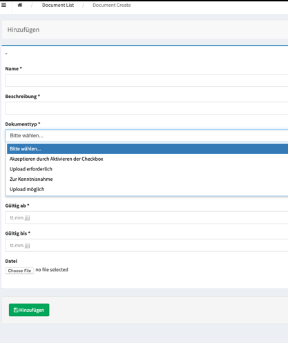 SCoRP ermöglicht Ihnen regelbasiert Dokumente zu hinterlegen. Diese können entweder akzeptiert, zur Kenntnis genommen, gegengezeichnet oder frei hochgeladen werden. Die Regeln werden über eine einfach verständliche Oberfläche durch den SCoRP Admin festgelegt.